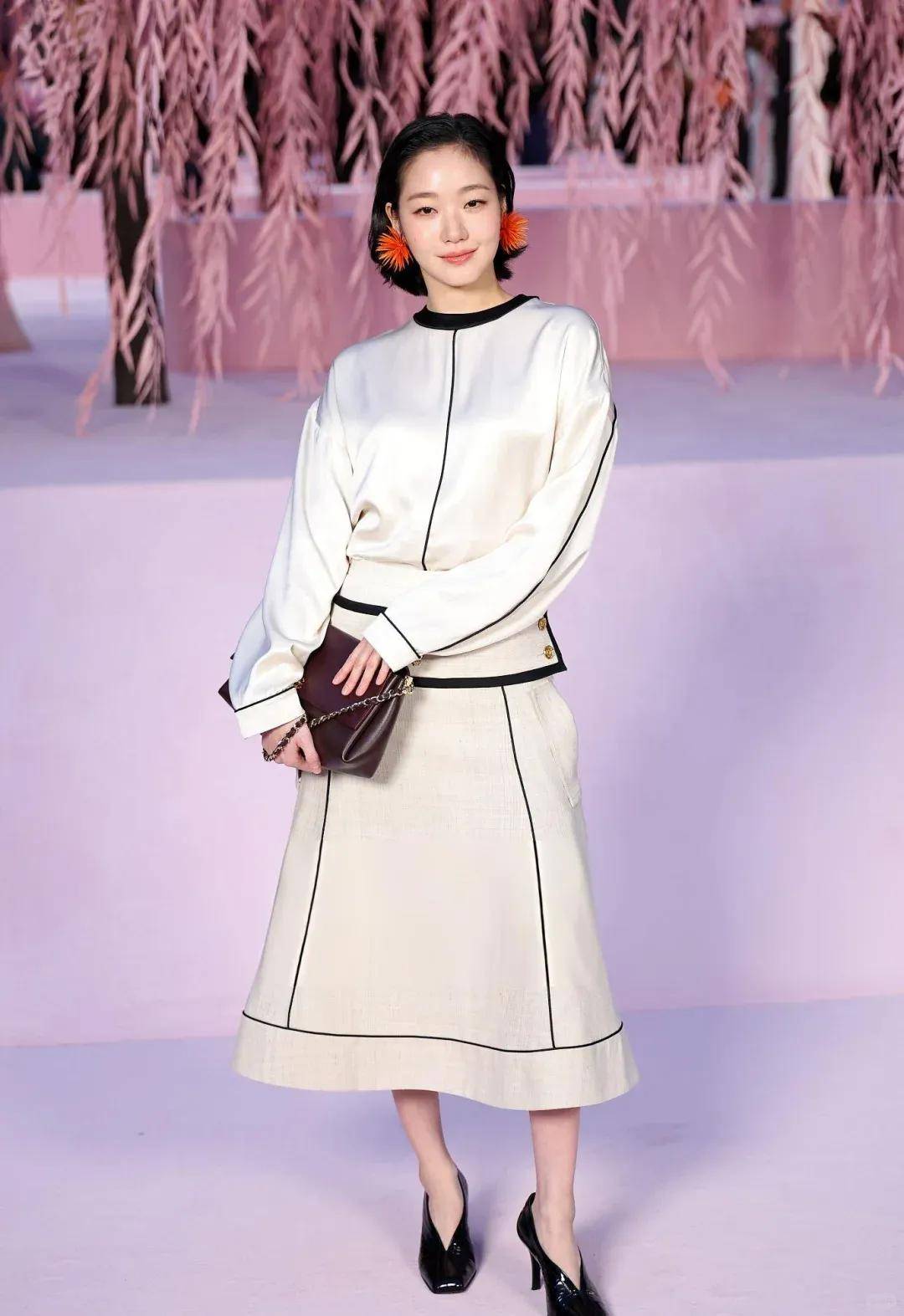 同样吸引眼球的还有韩国女演员金高银。她身着Chanel2026春夏系列珠光色几何线条裙装亮相,“白开水”的清淡妆容,在一众国际巨星中并不张扬,却极其耐看。她的声量,来自气质。