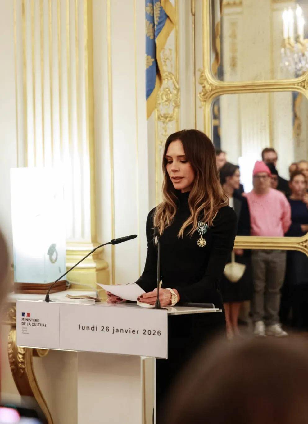 这次巴黎高定周,Victoria Beckham不仅迎来了个人品牌的重要节点,更获颁法国文化部授予的“艺术与文学骑士勋章”,以表彰其在时尚领域的长期贡献。从流行偶像到设计师再到被法国官方认可,Victoria Beckham 的身份地位在巴黎完成了一次极富象征性的确认。