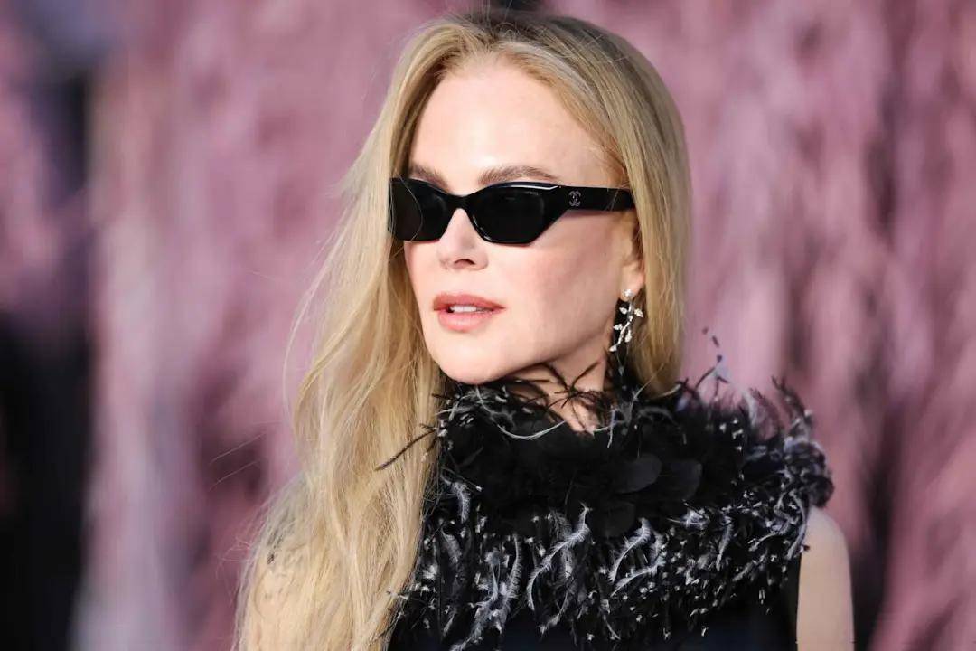 刚刚正式官宣离婚的Nicole Kidman当天也现身秀场,她身穿一袭黑色无袖连衣裙,裙身采用利落修身的直线剪裁,领口和下摆以羽毛装饰,形成明显的材质对比与层次变化。行走间,羽毛随着步伐摆动,动态轻盈感满满。