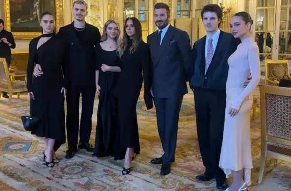 当日全家穿搭低调却不失气场:男主人David Beckha 西装笔挺,女主人Victoria Beckham以一袭黑色修身长裙亮相,合影中的站姿极富“战斗感”。两名男生均穿着黑色西装,女生则为简约裙装。整体造型体现了家族统一的时尚品位,同时又展现了每位成员的独特气质。