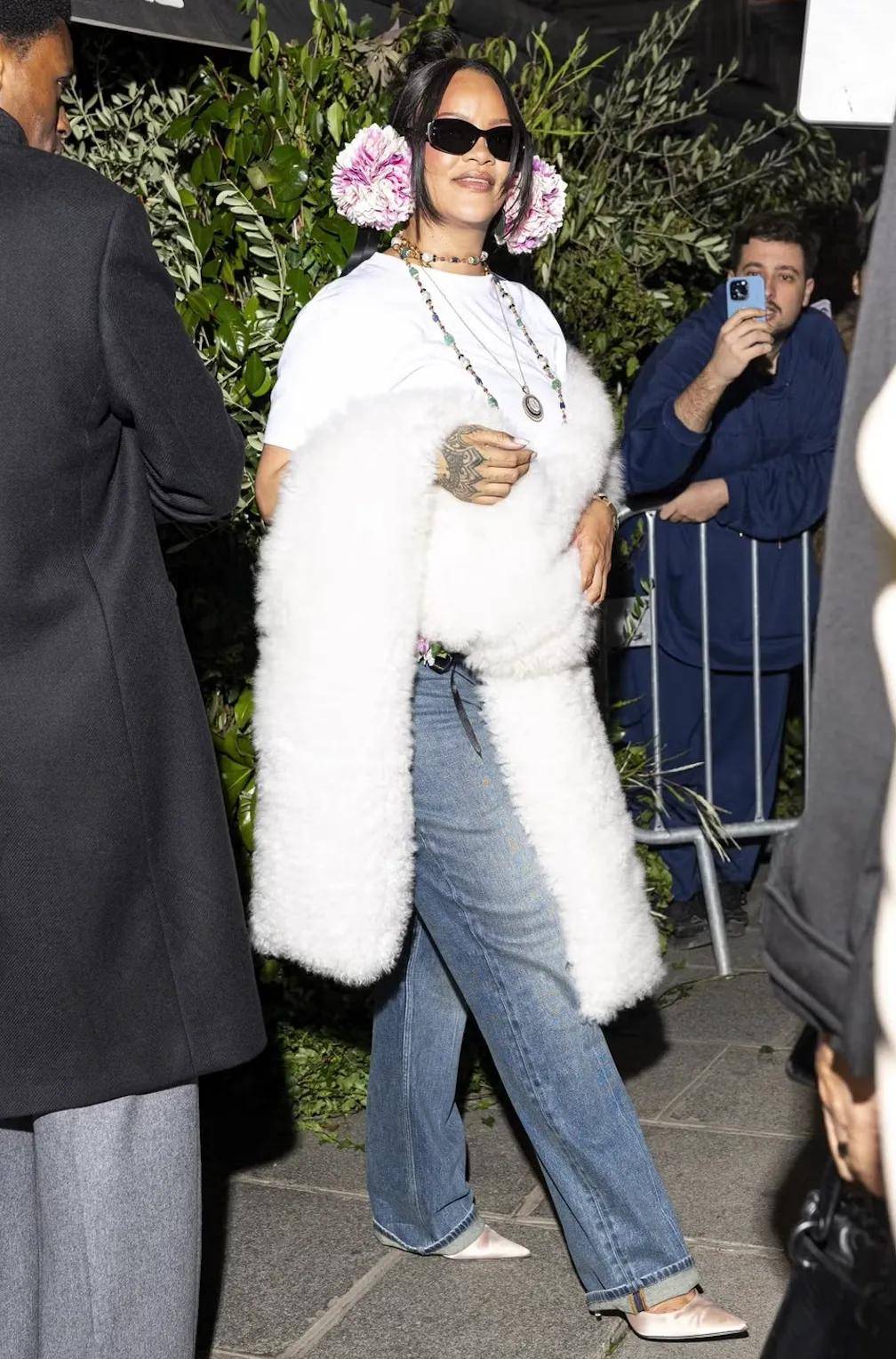 Dior2026春夏高定系列,创意总监Jonathan Anderson正是将仙客来为作为贯穿整个系列的灵魂元素,串联起Dior的花卉传承与当代想象。Rihanna的即刻演绎,则被业内视为对该系列最直接、也最有分量的背书之一。她同时身披的白色绒毛披肩,也疑似来自同系列的高定单品——在时尚语境下,“刚发布即上身”显然是一种极高规格的认可。